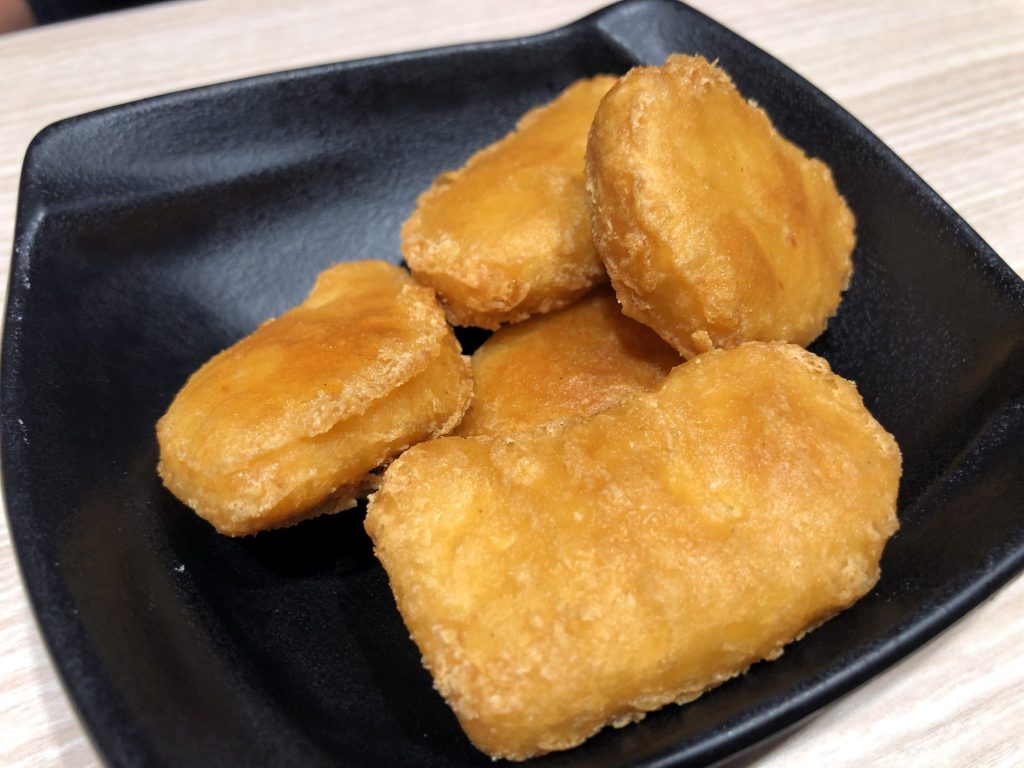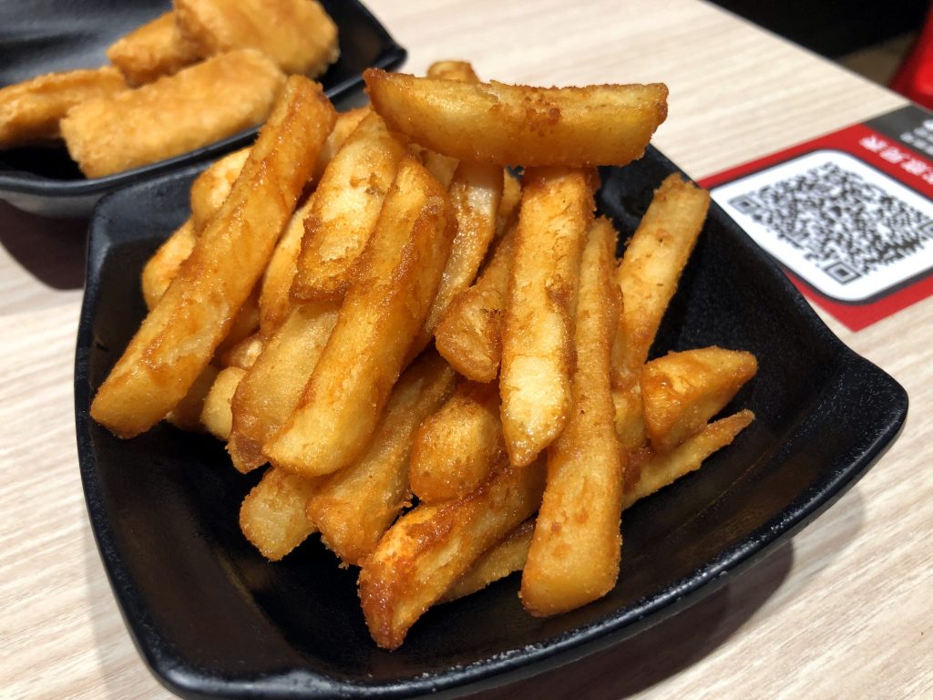 同樣在恰到好處的油溫下炸成,外酥內實,可以依個人喜好搭配番茄醬或胡椒粉享用。
