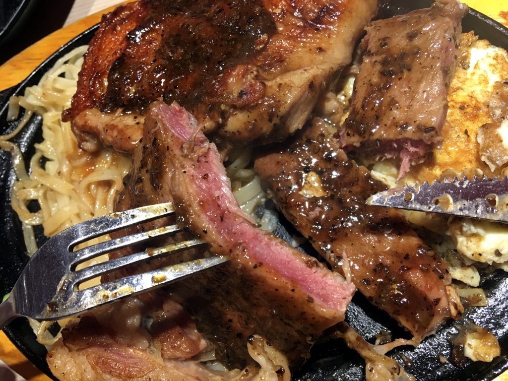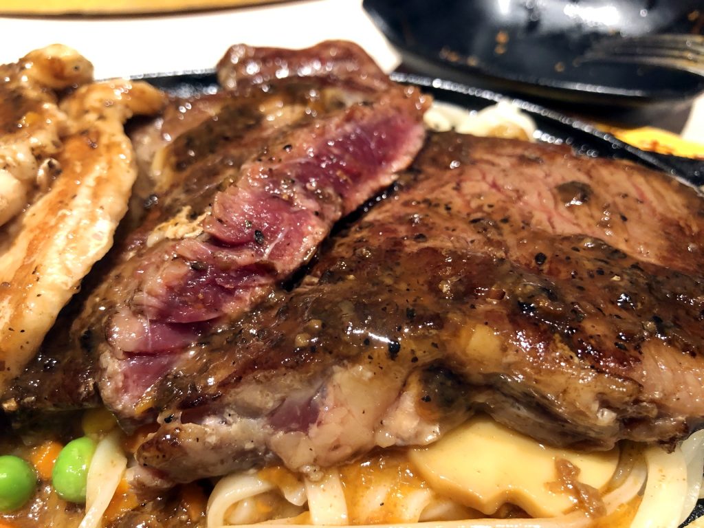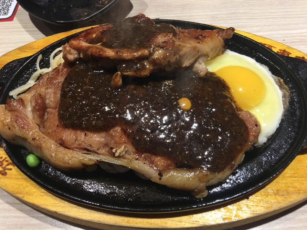 這道是店內主推款,菜單上寫著:肉質佳、油花分布於肉緣,使用穀物飼養牛,香甜多汁,是本店最受歡迎的牛排。一旁搭配的是完整去骨的雞腿排,再加上一顆太陽蛋,想翻面或維持原樣,都隨人喜好。
