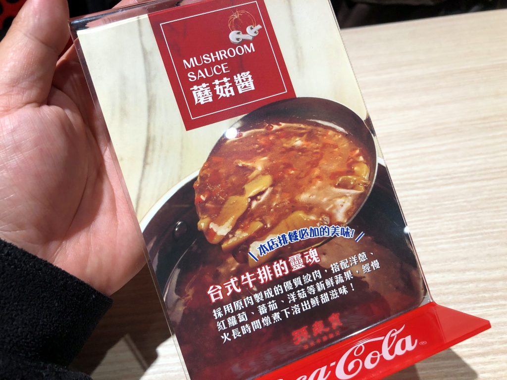 提到台灣牛排,就不能不說這經典的黑胡椒醬。以黑胡椒粒大火拌炒,加入蒜頭、紅蔥頭酥與調味料,香氣特別濃郁,再搭配蘑菇醬,才算是完整的台式風味。