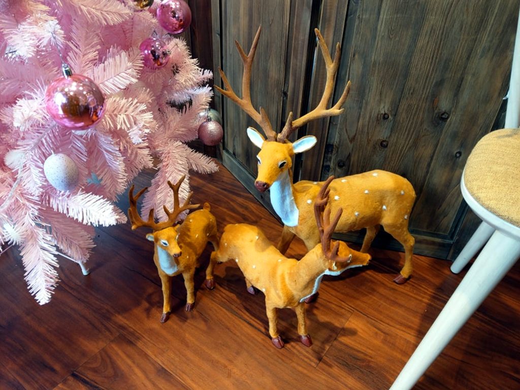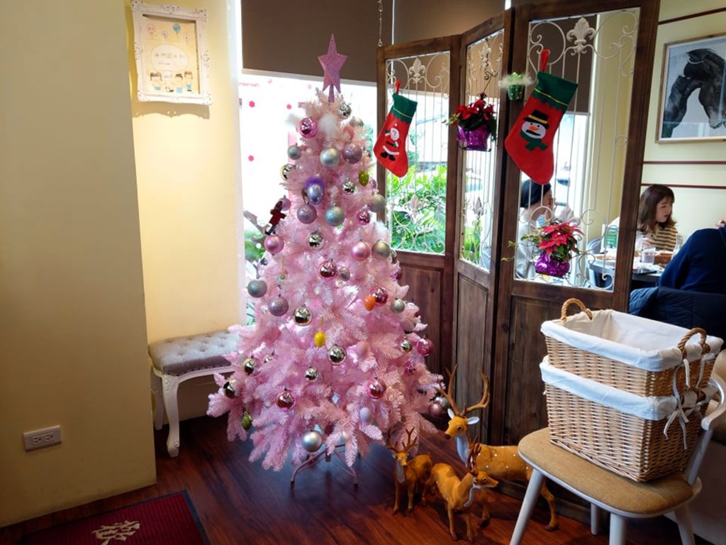 十二月正值聖誕節期,店內擺上粉紅色的聖誕樹,一旁還有可愛的梅花鹿裝飾,節慶氣氛濃厚。
