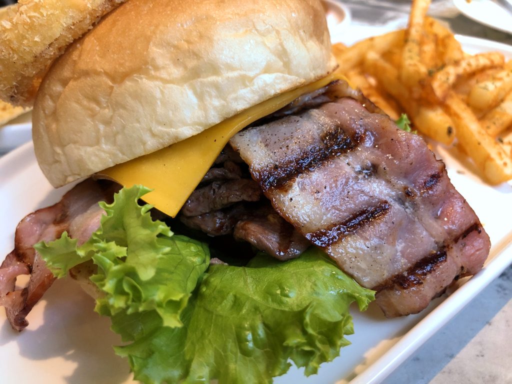 培根、起司、生菜與第戎美乃滋相互堆疊。所謂第戎,其實是以芥末籽為基底的美乃滋,風味溫潤不嗆。牛排採切片處理,一口咬下即可輕鬆入口,不會出現咬不斷的窘境,表現大大超出預期。