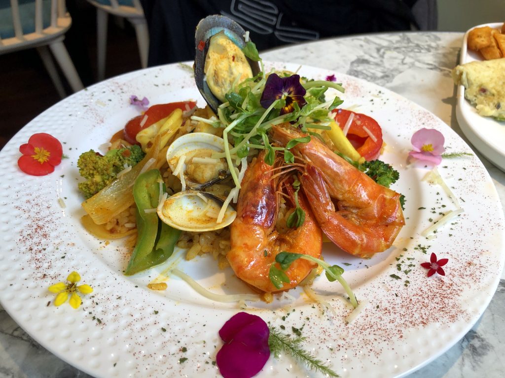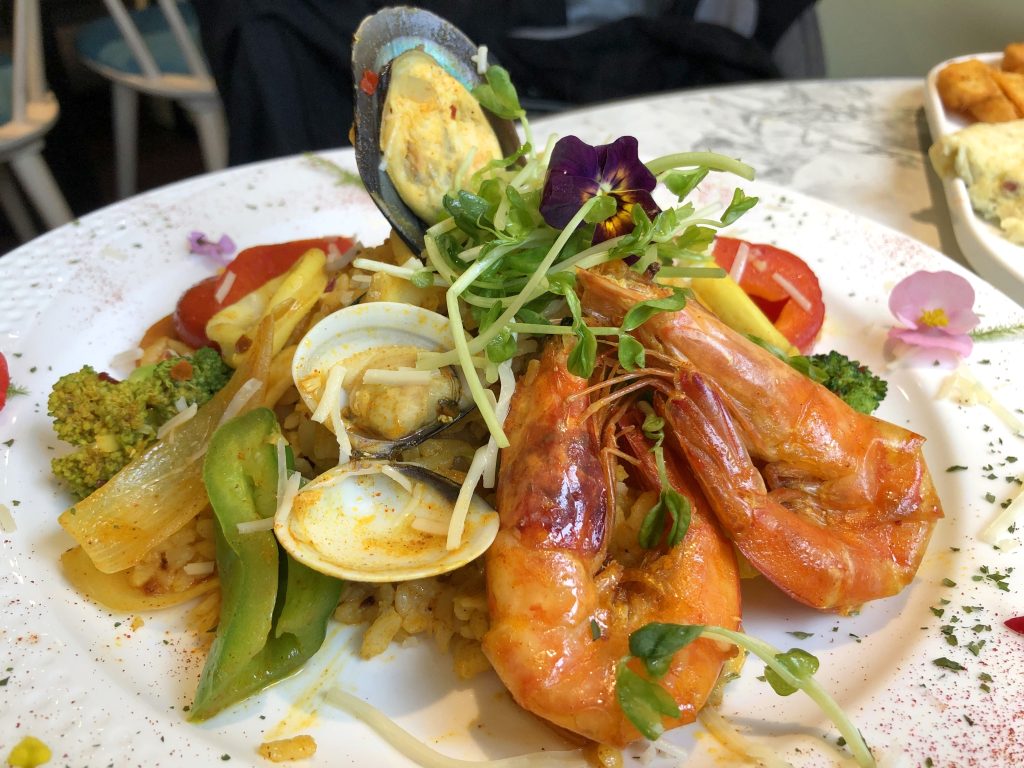 西班牙燉飯的靈魂在於香料,薑黃讓米飯呈現金黃色澤,番紅花則帶來獨特香氣。雖然無緣單獨品嚐番紅花的原味,但這些香料交織出的風味,讓米飯層次豐富,再結合海鮮的鮮甜,令人相當喜愛。