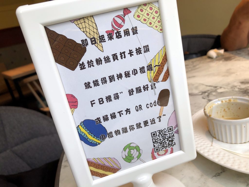 店員細心介紹完餐點並完成點餐後,桌上立牌提醒著:打卡即可獲得神秘小禮物,增添幾分用餐的小樂趣。