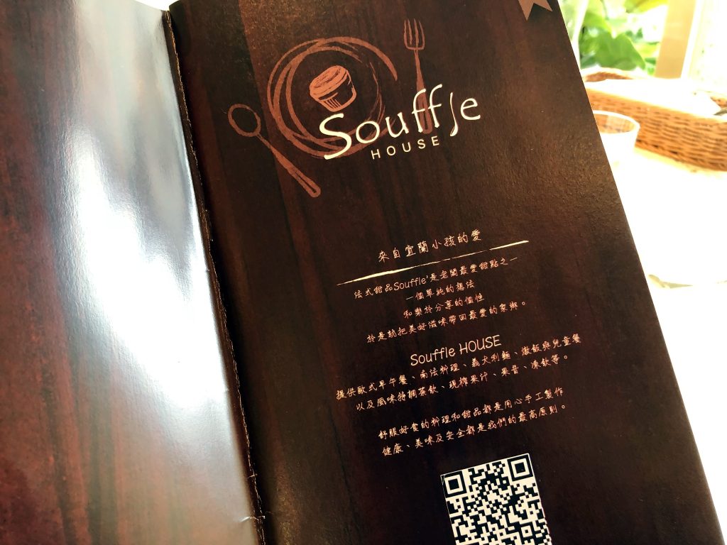 翻開菜單第一頁,記載著店家的故事——這份來自宜蘭的愛。法式甜品 Soufflé 是老闆最鍾愛的甜點之一,源於一個單純卻真誠的念頭,以及樂於分享的性格,於是將這份美好滋味,帶回最愛的家鄉。