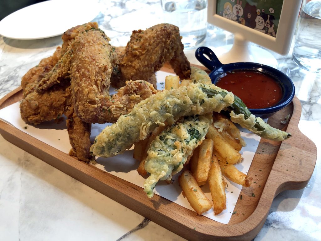 作為開胃菜,雖名為雞翅,卻搭配了炸糯米椒與薯條,份量毫不含糊。酥脆的麵衣包覆著柔嫩雞肉,薄而不厚的炸衣成功鎖住肉汁,再沾上韓式辣醬,香辣提味,讓人一口接一口。