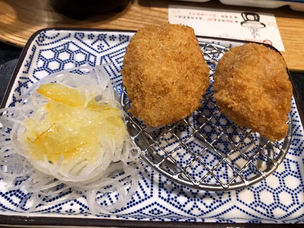 活動加購 99 元即可享用北海道大干貝。酥脆麵衣包著鮮嫩多汁的干貝,外酥內彈,兩顆真的只是剛暖身,吃完只剩下一個念頭——怎麼不多來幾顆。