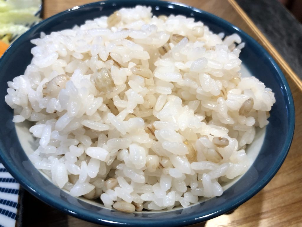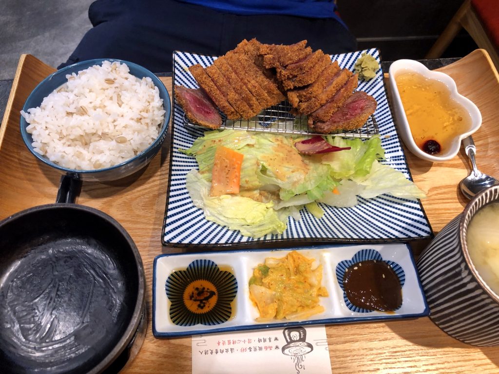 白飯選用越光米混合麥飯,米粒飽滿、口感順口,和炸牛排一起入口相當合拍。