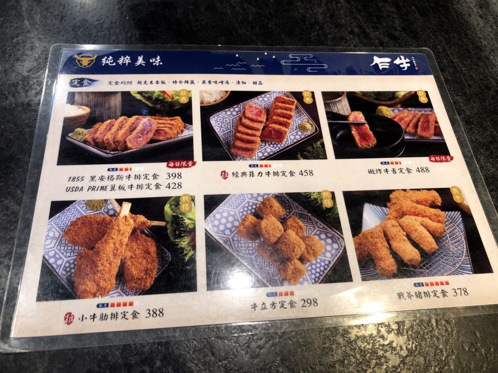 餐點以定食為主,共有七款選擇。最入門的是牛立方定食,若不吃牛也有戰斧豬排可選,價位從 298 元起,落在中價位區間。最近荷包偏緊,還是得克制一下,就先從最基本款開始。