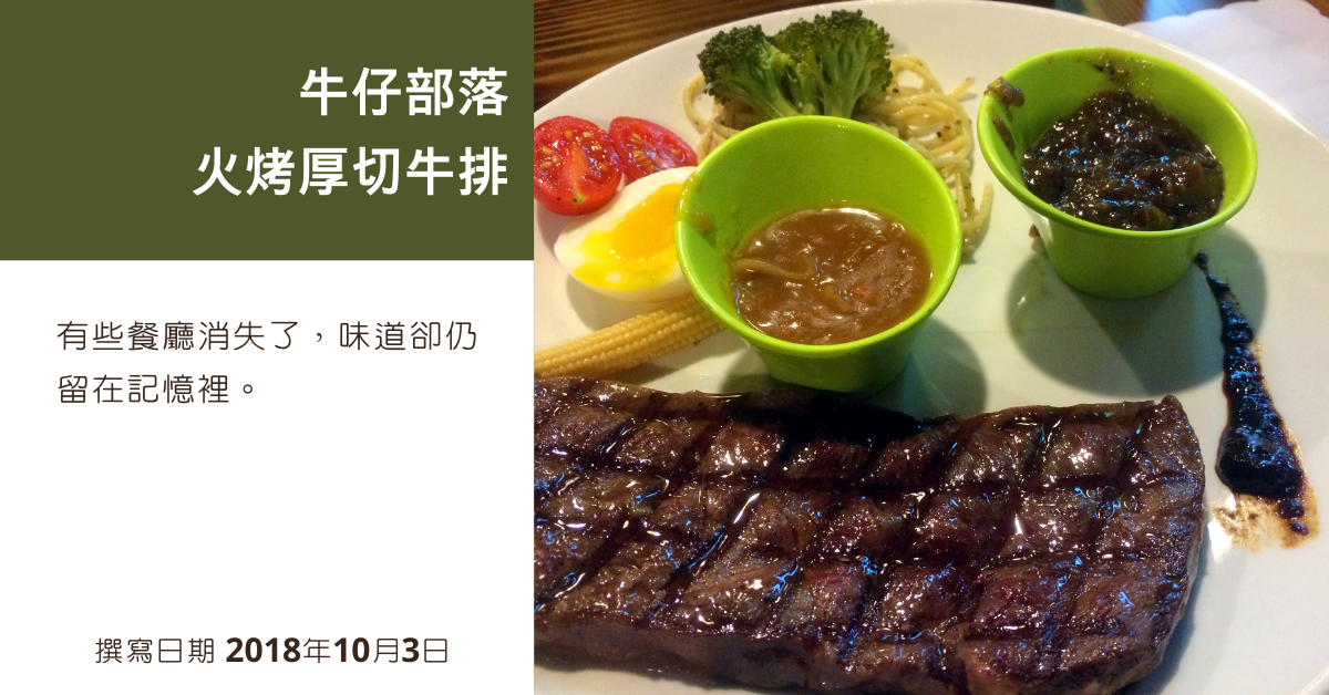 牛仔部落火烤厚切牛排似乎已漸漸淡出餐飲版圖,至少在日常的搜尋結果中,已難再覓其蹤影。所幸當年仍曾在新埔捷運站旁嚐過一回,這篇食記,便當作是一段飲食記憶的留存與致意。畢竟有些餐廳,不是因為不好吃而消失,而是靜靜走完了它的時代。
