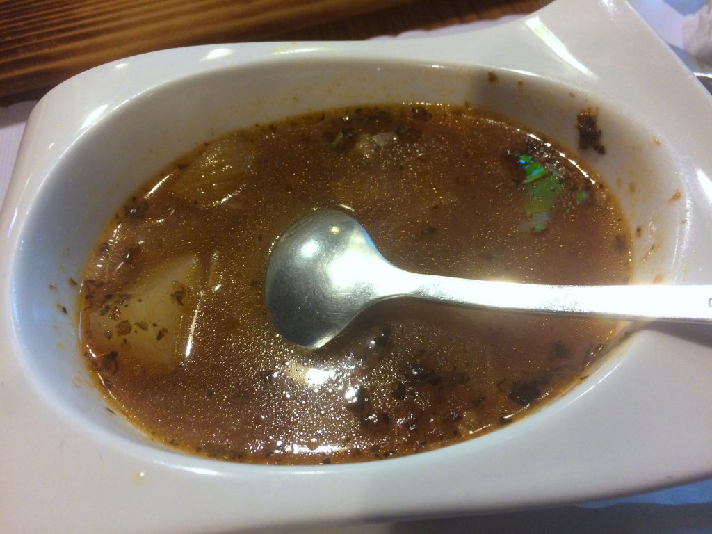 前湯是一碗近似羅宋湯的鹹湯,酸香中帶著蔬菜的甜味,雖然無法準確說出配方,但作為暖胃的開場,功能性十足,也不會搶走主角的風采。