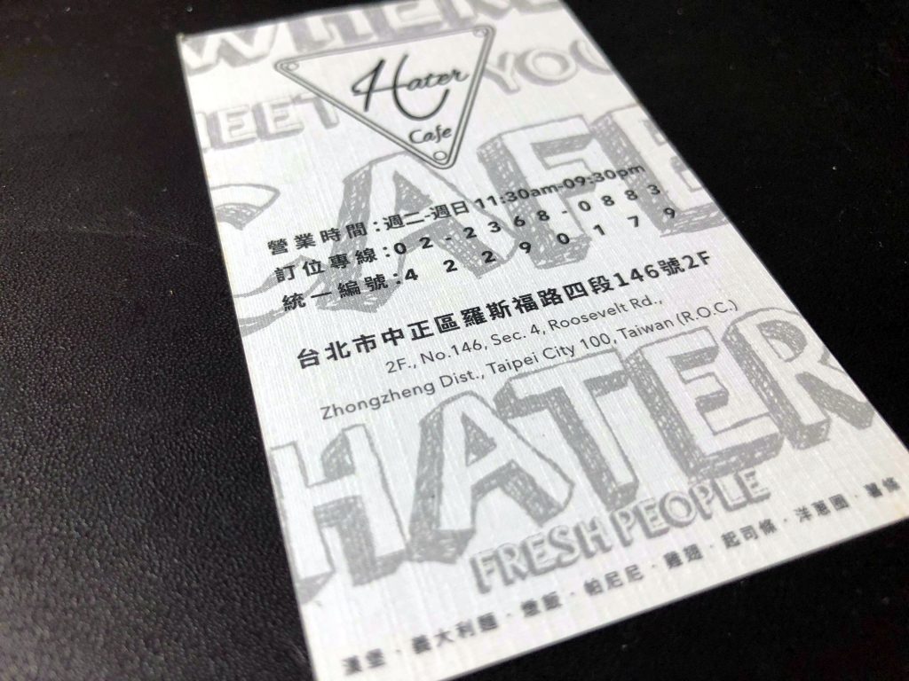 店面位於捷運公館站 1 號出口旁,出站後往右手邊走去,稍微留意一下騎樓的柱子,很快就能找到這間 Hater Cafe。