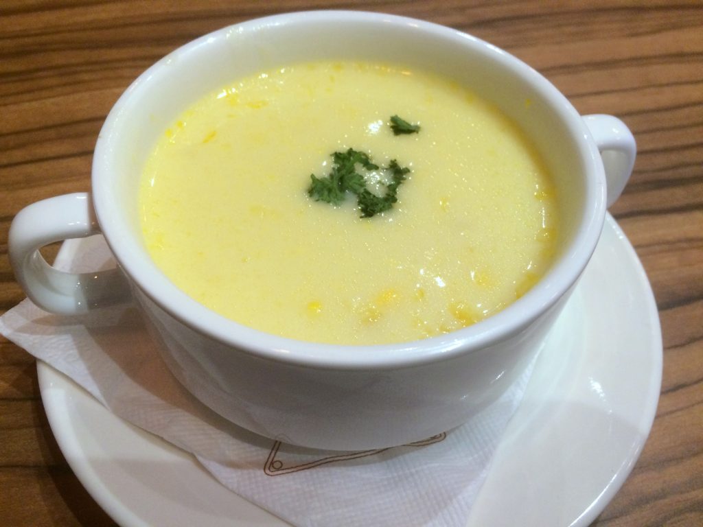 套餐附上的玉米濃湯,表面灑上香料葉點綴,看似簡單,卻有一種讓人安心的熟悉感。