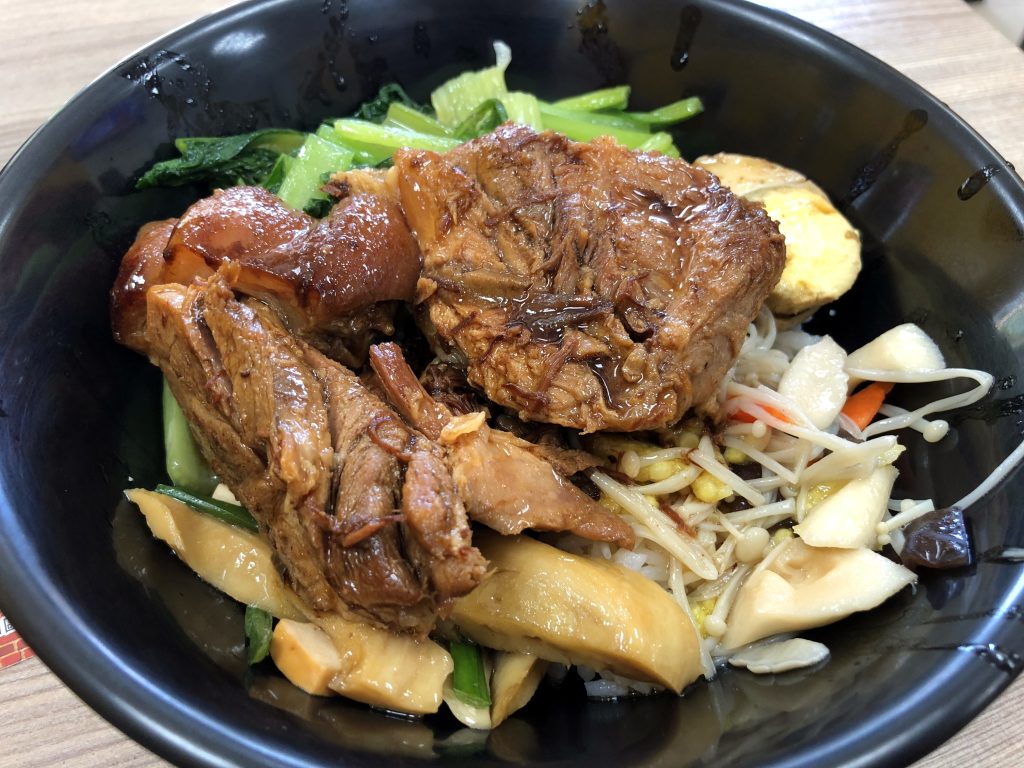 腿庫飯上桌時,第一眼就被那塊份量十足的腿庫吸引。肉塊相當豪邁,滷色沉穩,看得出時間與火候的累積。不過個人倒覺得,這樣的配菜配置並不那麼適合「蓋飯」的形式,味道層次稍顯繁複,反而容易分散腿庫本身的滷香。也因此,更能理解為何許多腿庫專賣店選擇只搭配酸菜——簡單,卻能讓主角站在舞台中央。