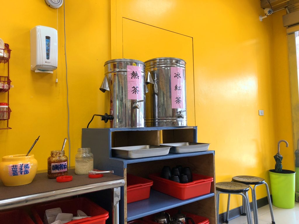 店內牆面刷上溫暖的黃色,少了拘謹,多了些親切感。一旁備有熱茶與冰紅茶,調味料整齊擺放,餐具採自助式,整體空間沒有多餘裝飾,卻流露出一種「吃飯本來就該如此」的自在。