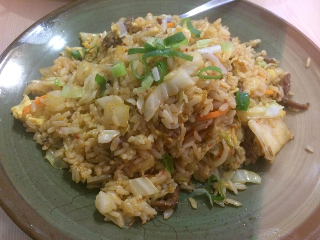 另一盤則走向更家常的路線,像是肉絲炒飯的延伸版本,鋪上牛肉,再灑些青蔥點綴。這一口,讓人想起很久以前獨自在家的時候,翻冰箱找剩飯,擠點番茄醬、煎張蛋皮,隨手做成蛋包飯的午後時光。簡單,卻帶著某種安定人心的力量。