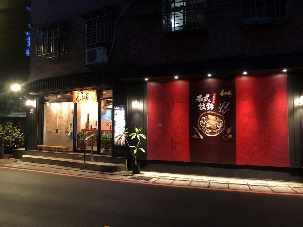店面位置相當好找,靠近捷運板橋站,從三號出口出來,穿越文化路,沿著土地銀行旁的巷子走進公館街,右轉沒幾步路,就能看見這間風格鮮明的店鋪。門面正前方清楚介紹著「泰式拉麵」的概念,對曾經吃過【這位泰泰】的我來說並不陌生,但也正因如此,更讓人期待它是否能端出屬於自己的風味輪廓。
