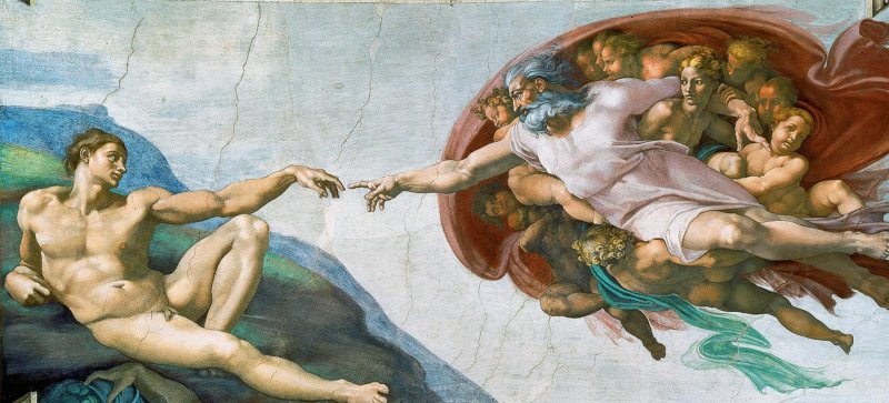 米開朗基羅在西斯汀禮拜堂天花板所繪製的《創世紀》系列壁畫,可以說是整個西方藝術史最具代表性的宗教藝術之一。畫面從「神分開光暗」到「創造亞當」,描繪了人類對於宇宙起源的想像與信仰理解。