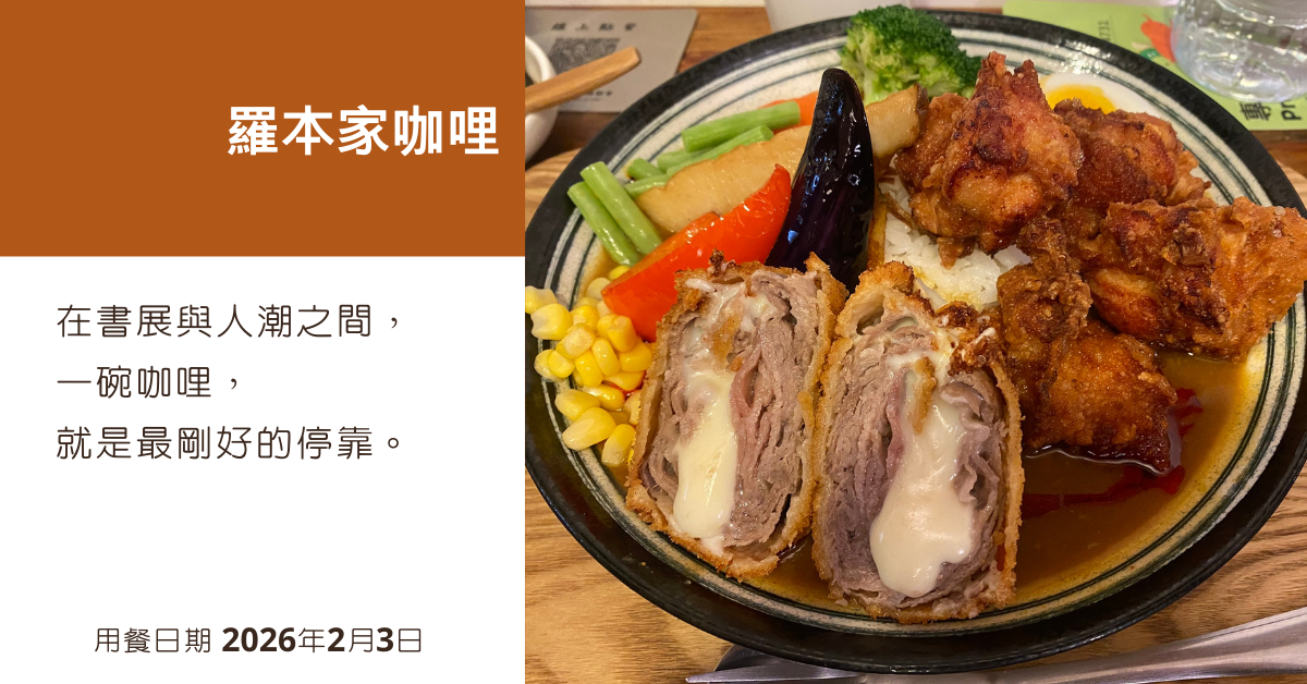 逛完書展的傍晚,總少不了一頓能安撫身心的晚餐。想起先前朋友曾提過:「世貿附近有一間咖哩飯不錯,而且價格也很實在。」那時只是記在心裡,沒特別放在行程裡。但剛好來到附近,於是順勢轉進巷弄,來到這間低調卻頗有口碑的羅本家咖哩